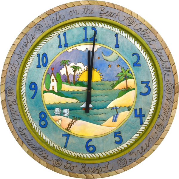 Sticks handmade 36"D wall clock with bright, colorful beach motif