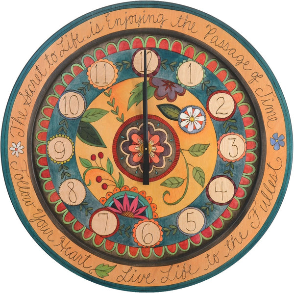 36" Round Wall Clock –  Beautiful blue contemporary floral clock packed with inspirational phrases in its center