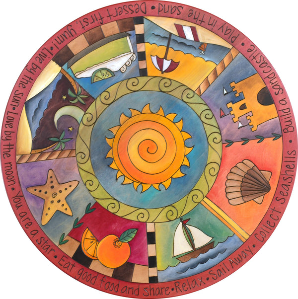Sticks Handmade 24"D lazy susan with tropical themes and sun in the center