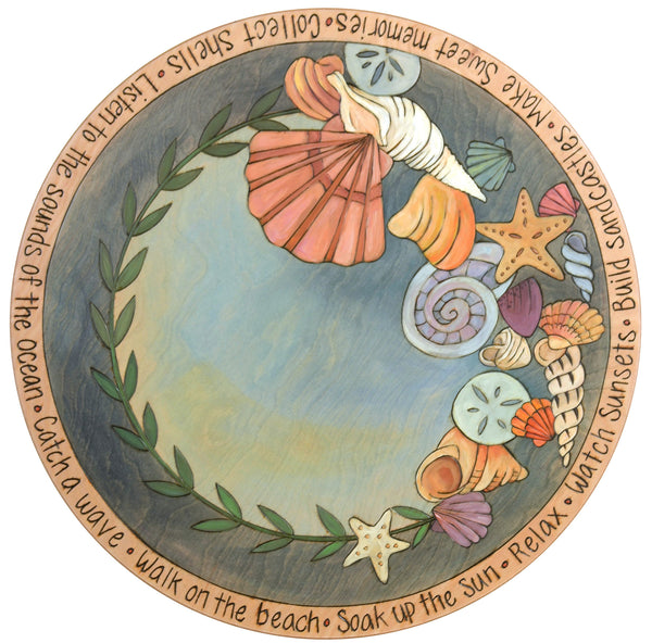 Sticks Handmade 24"D lazy susan with seashells and beach scene