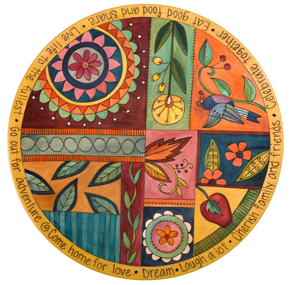 Sticks Handmade 24"D lazy susan with inspiring words, flowers and a heart home on the horizon