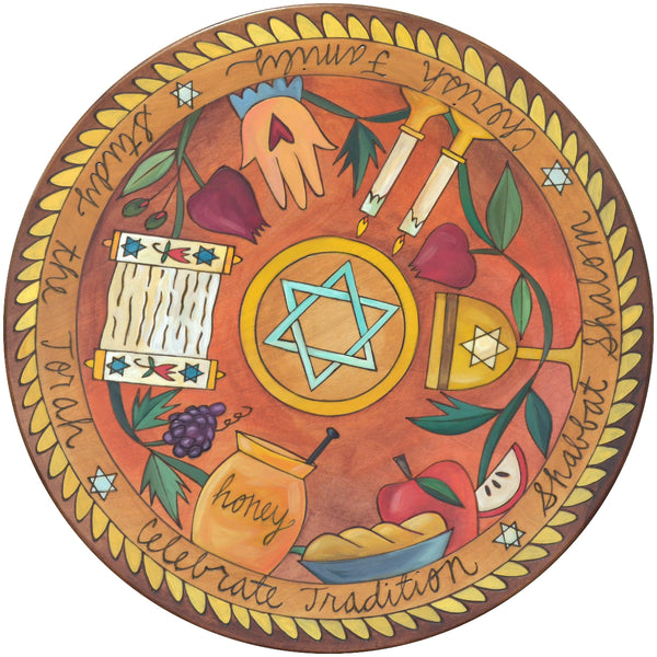 Sticks Handmade 20"D lazy susan with Star of David and festive foods