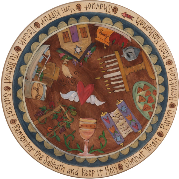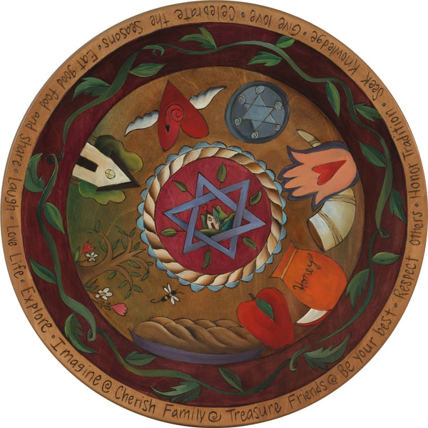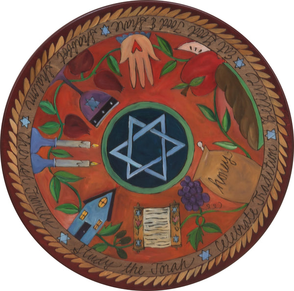 Sticks Handmade 20"D lazy susan lazy susan with Jewish imagery and symbols