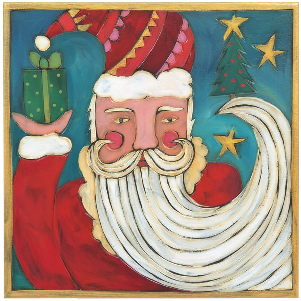 Sticks handmade wall plaque with Santa Claus holding a gift