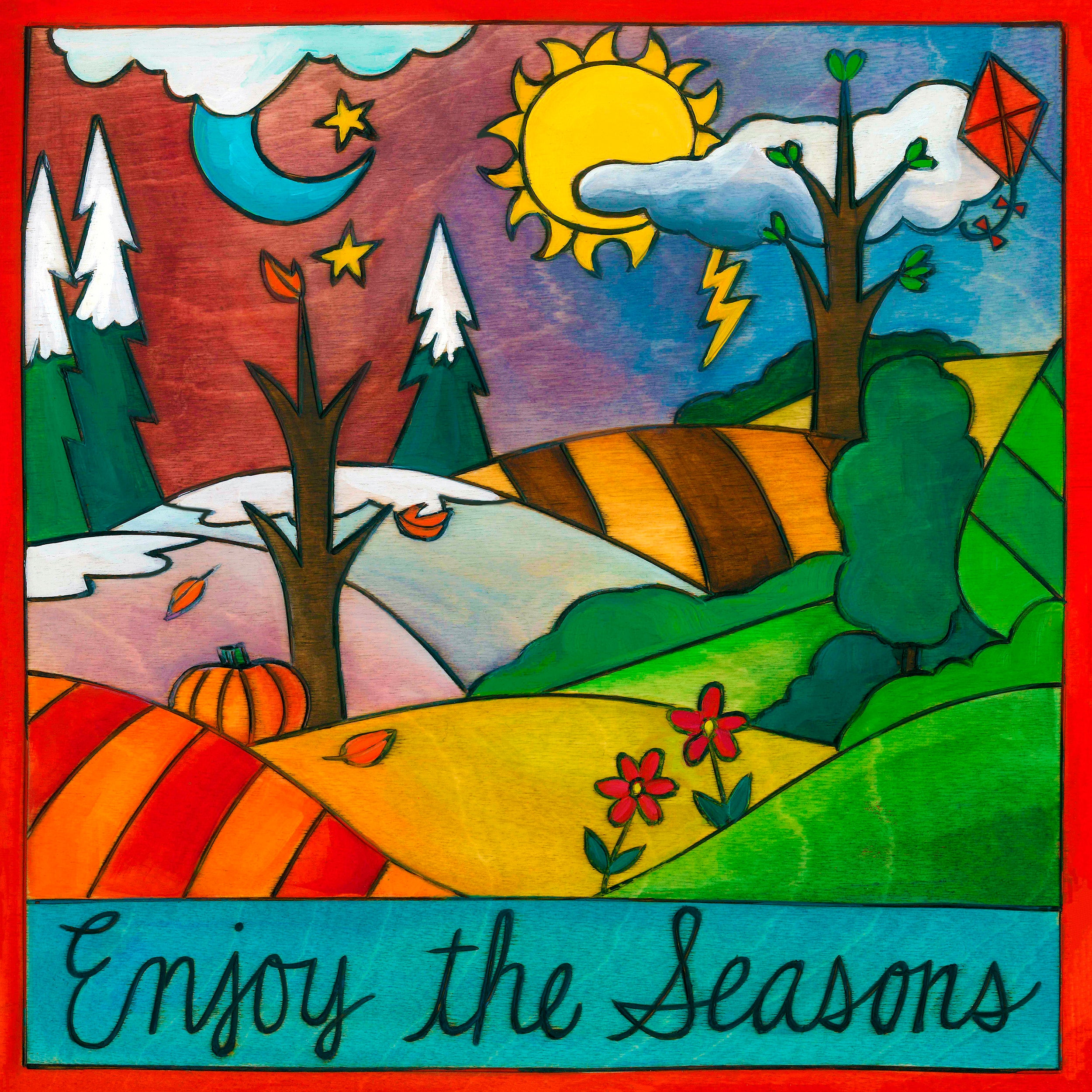 "Enjoy the Seasons" colorful, artisan printed plaque