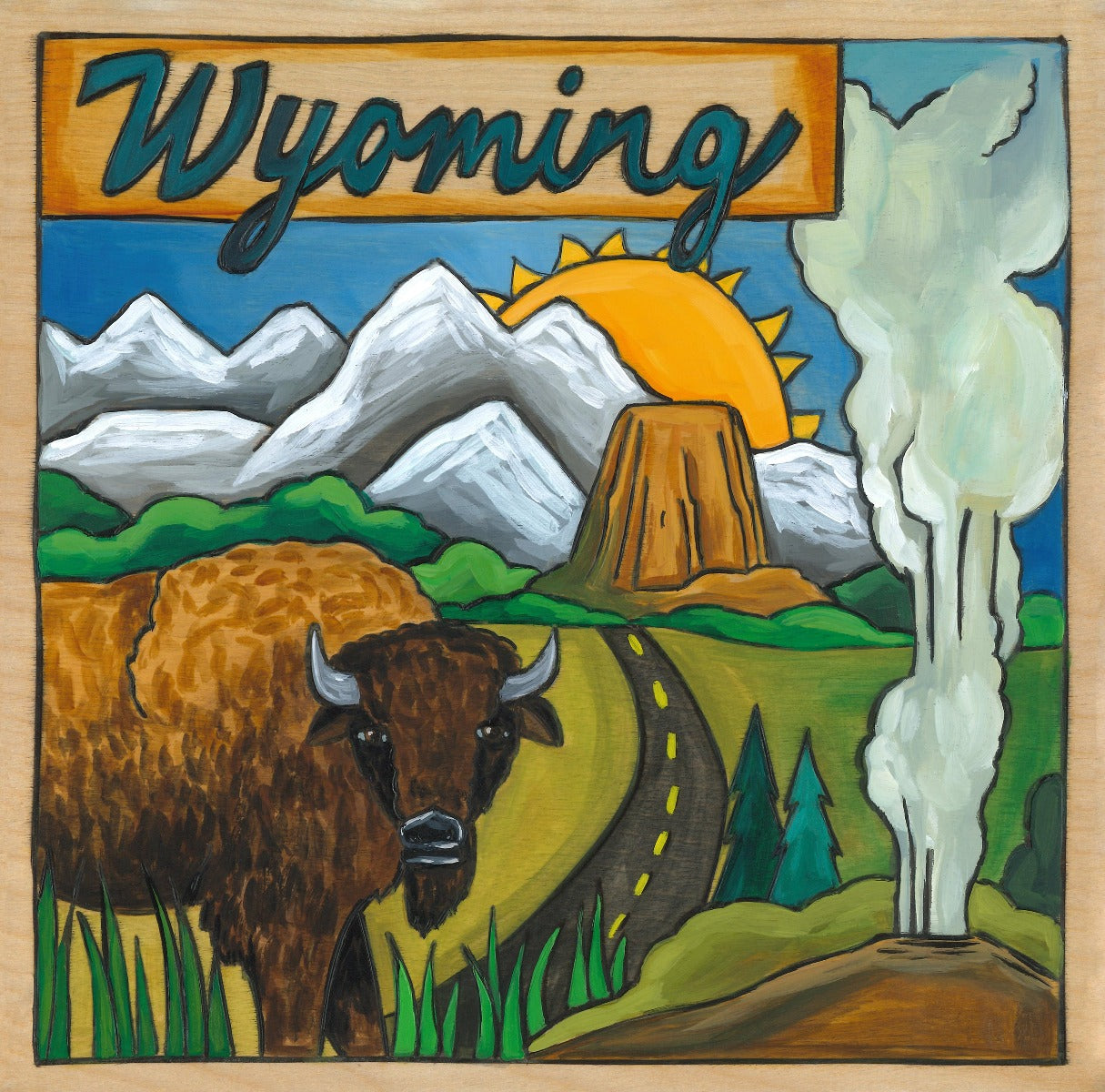 Beautiful Wyoming landscape plaque honoring its national parks and treasures