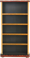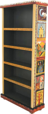 Lovely tall bookcase with colorful block icon motif and dark interior