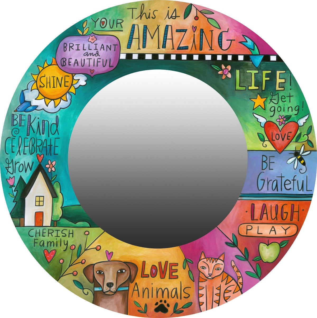 Beautifully vibrant "this is your amazing life" mirror with inspirational phrases all around