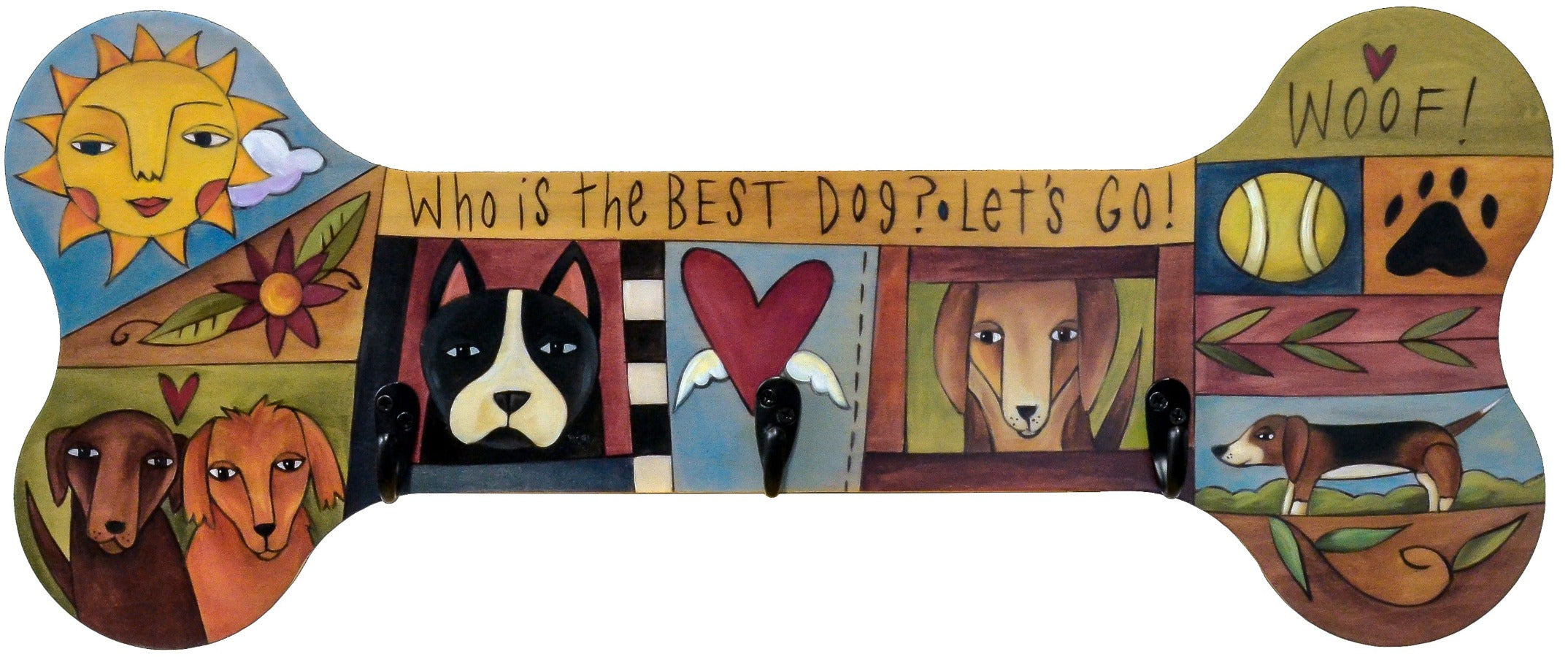 A lovable dog-themed crazy quilt motif coat rack with a reminder you have the BEST dog