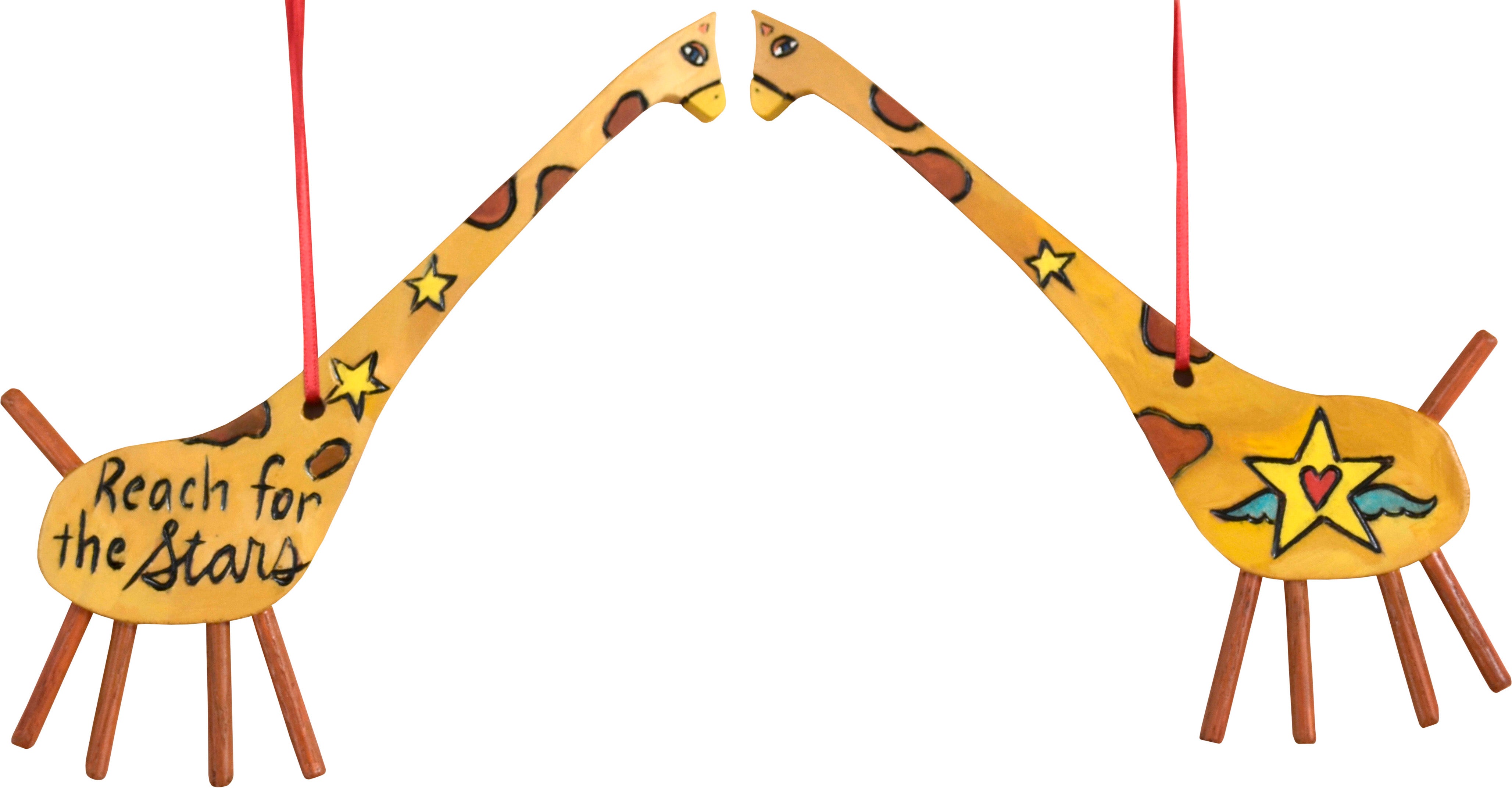 "Reach for the stars" themed giraffe ornament with fun starry spots