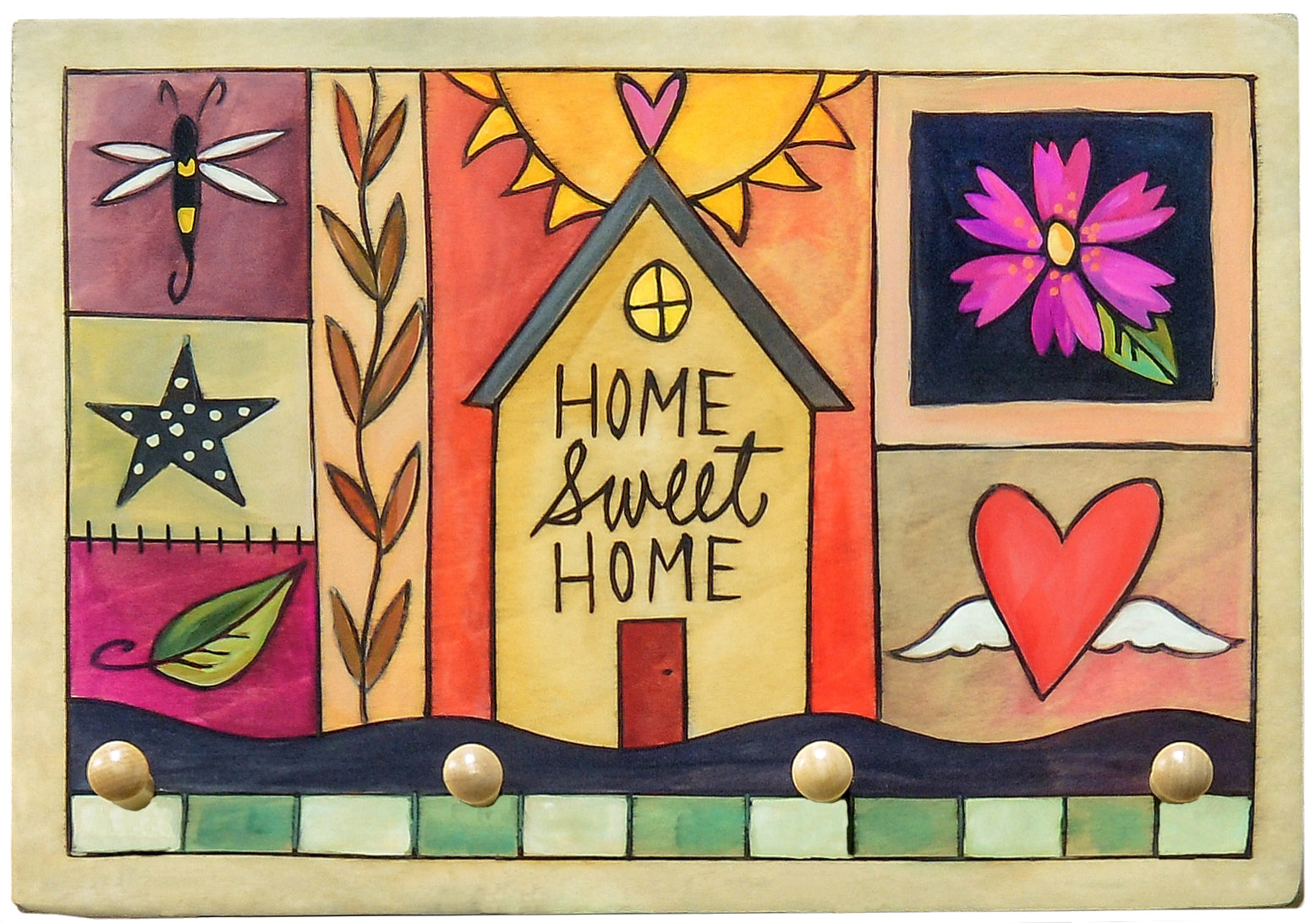 Light and bright "home sweet home" crazy quilt key holder plaque motif