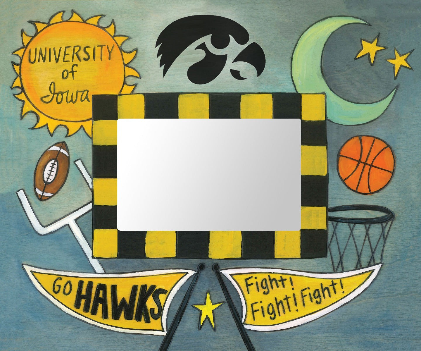 University of Iowa Pride artisan printed picture frame, "Go Hawks!"