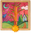 Tree of life nestled in a home-y landscape done in bright jewel tones
