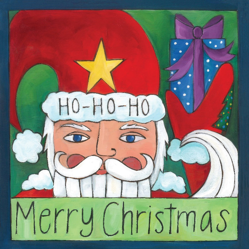"Merry Christmas" artisan printed holiday plaque with Santa!