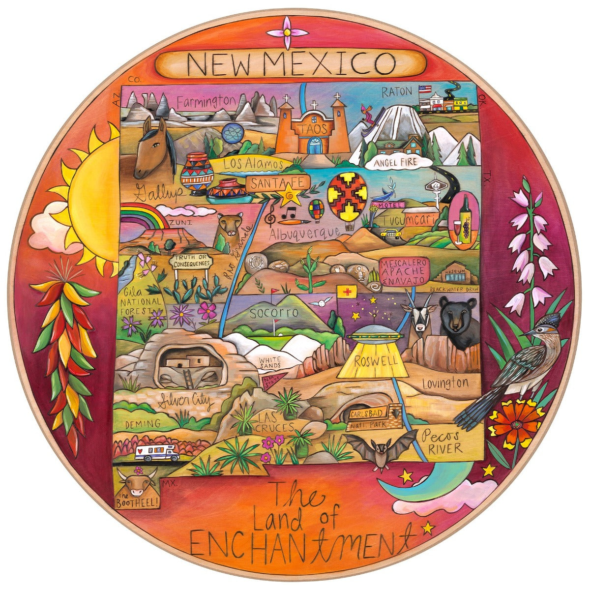 New Mexico map lazy susan highlighting some of the most beloved aspects of the state