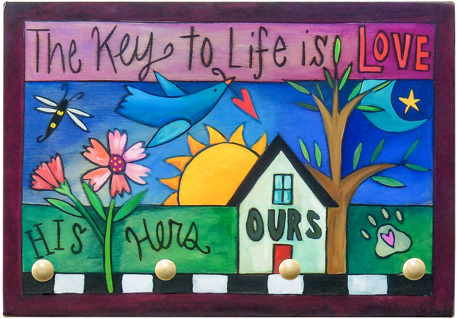 "Love" key ring plaque theme with designated pegs for everyone in the family