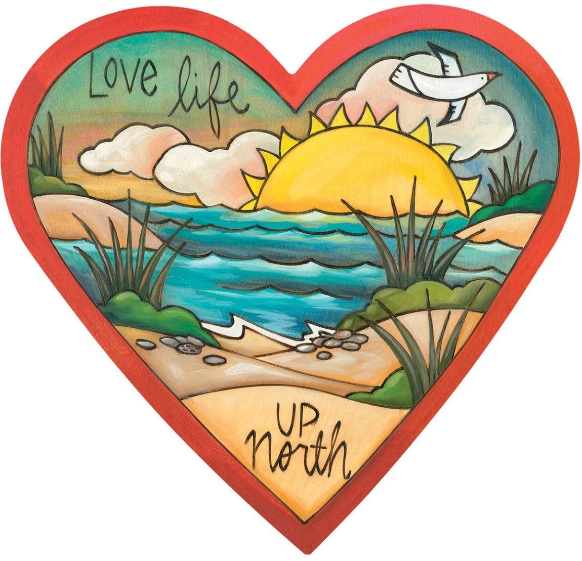 Heart-shaped wall art with a beautiful sunny beach landscape